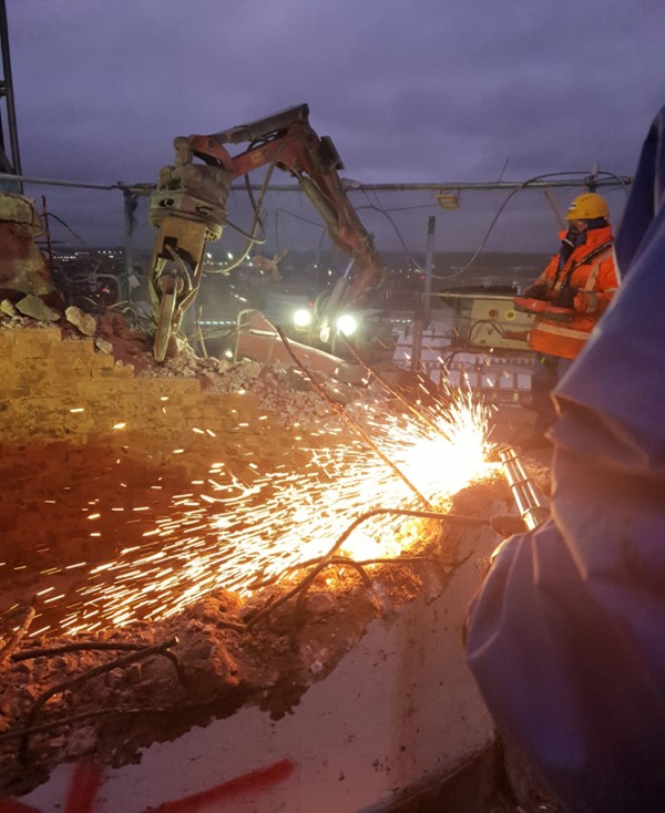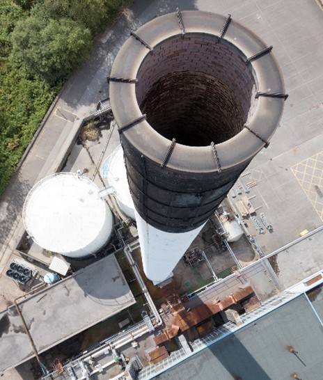 - Where reduced to a low enough height, high-reach excavators fitted with demolition attachments took down the lower section of the chimney under careful supervision; taking care not to impact adjacent infrastructure.